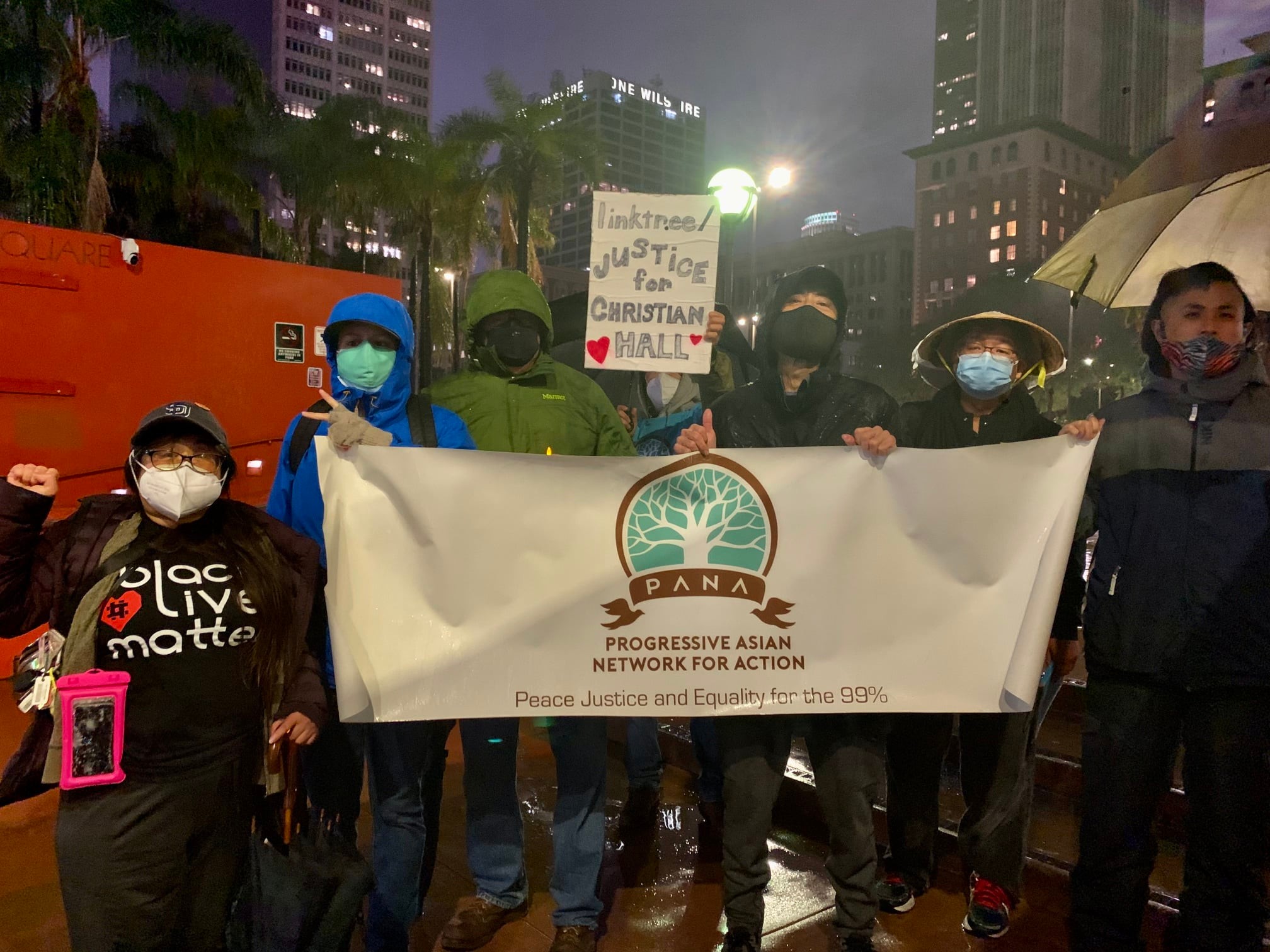 Allies from the Anti-Asian Violence community safety street walks efforts were represented: Neighborhood Safety Companions, Progressive Asian Network for Action, Asians with Attitudes and Pan Asian Harmony Society. Thanks to Answer Coalition for organizing, supporters from Party for Socialism and Liberation and Cliff Smith of the Roofers Union Local 36, @taevinmusic and all who came out to support this cause.